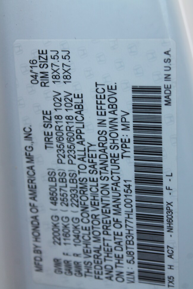 - VIN : 5J8TB3H77HL001541
