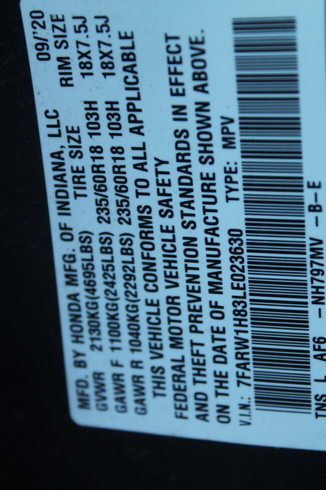 - VIN : 7FARW1H83LE023630